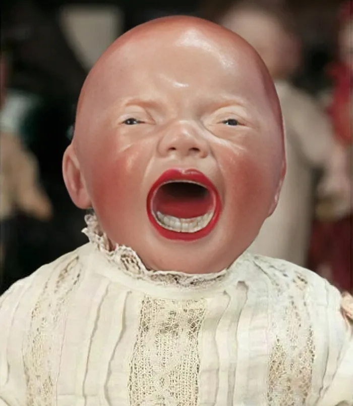 Кричащий пупс, сделанный из фарфора немецким кукольником Кестнером в 1920 году.