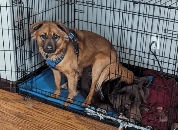 «Моя собака Ракета буквально сидит на другой моей собаке. Столько терпения».@reddit/Stephi1452