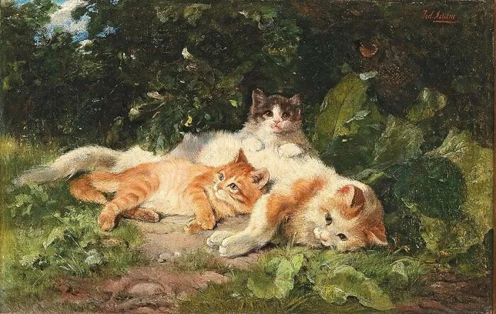 «Кошка с котятами», Джулиус Адам, 1913 год.© facebook.com/Animals in Art through History
