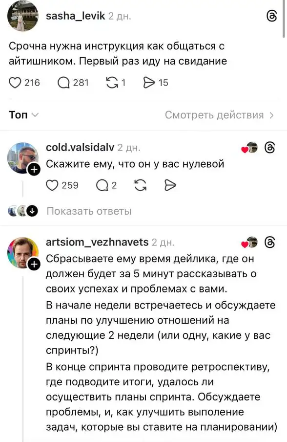 «Скажите ему, что он у вас нулевой». © threads.com*