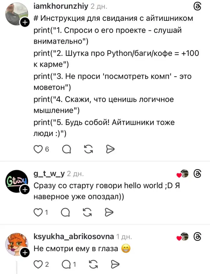 «Олдовый кекнет чаечкой»: девушка попросила советов для свидания с айтишником
