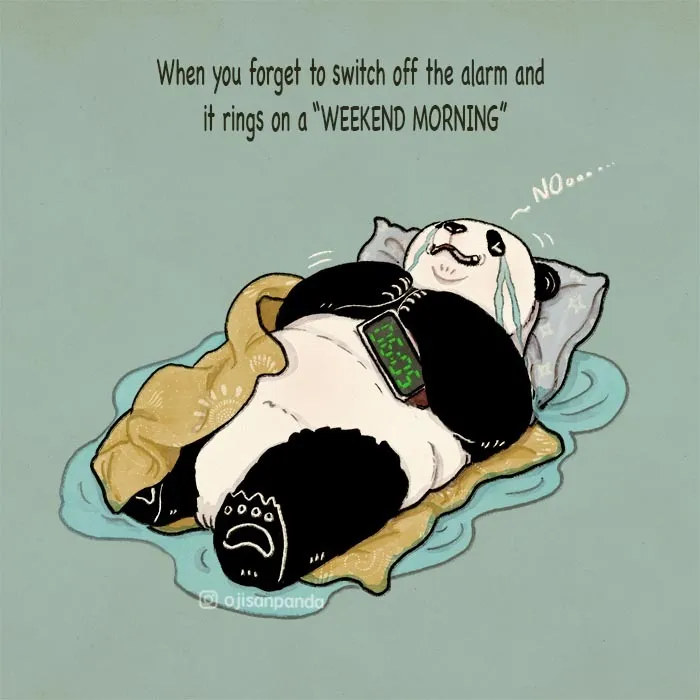 «Когда ты забыл выключить будильник, и он зазвонил в утро выходного дня».© boredpanda.com/xiaobaosg