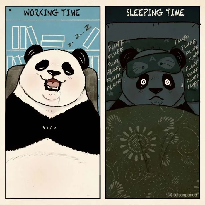 Иллюстратор-фрилансер из Сингапура по имени Уильям Чуа создал иллюстрации панды, чтобы изобразить повседневные трудности жизни всех миллениалов — людей средних лет.
