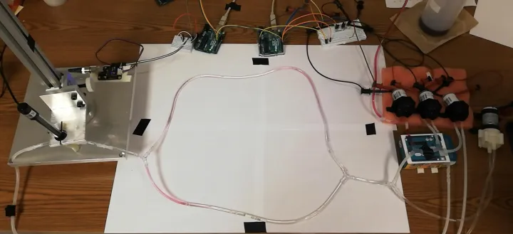 Искусственная система кровообращения, состоящая из трубок и насосов, имитирующих кровеносные сосуды и сердце.© EPFL