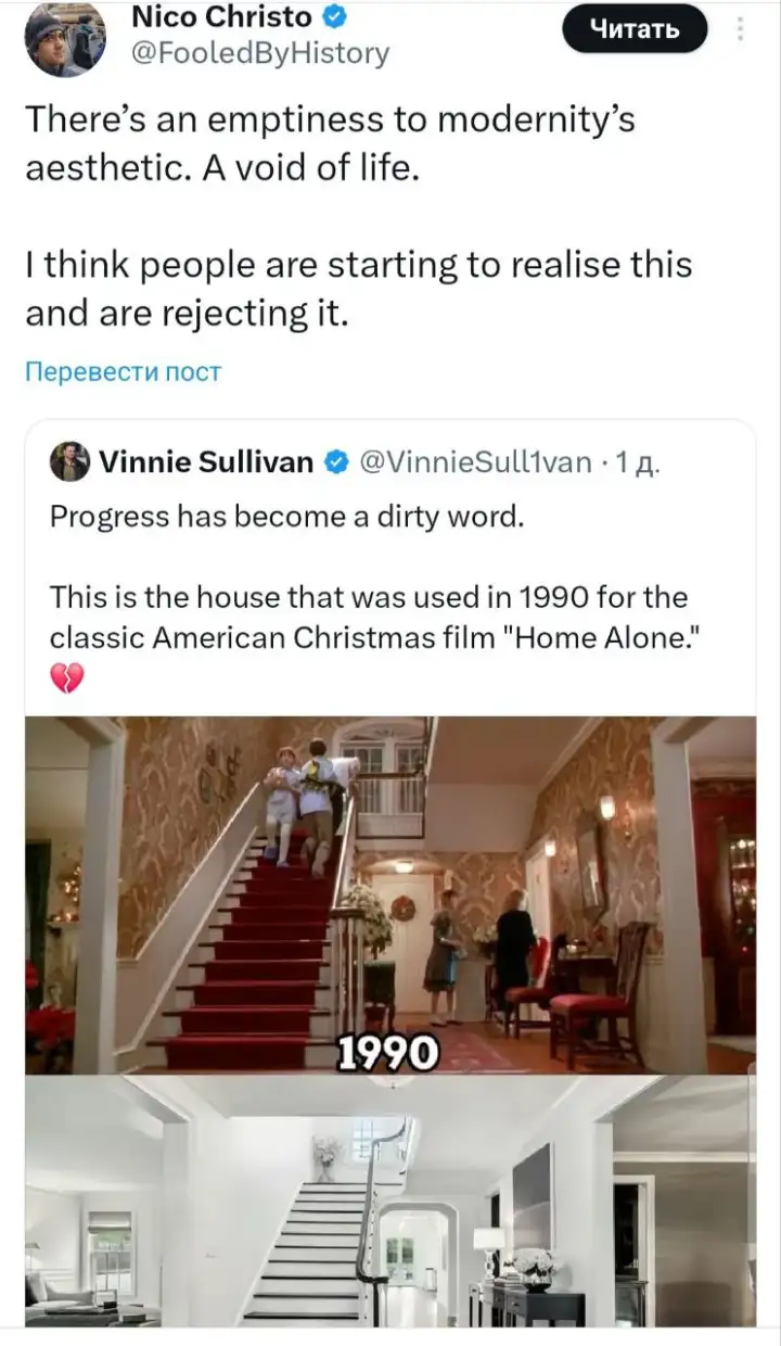 Дизайн дома из фильма «Один дома» в 1990 и 2024 годах.© x.com
