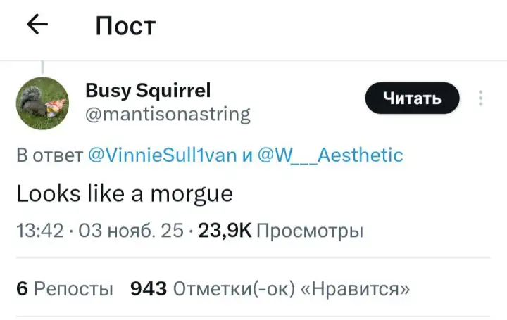 «В современной эстетике сплошная пустота. Пустота жизни. Я думаю, люди стали это осозновать и отказываться от этого».© x.com